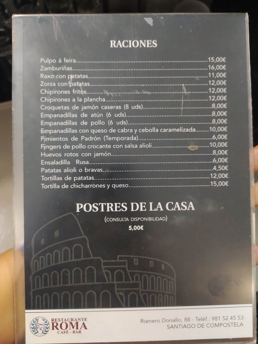 Welcome to Restaurante Roma, a hidden gem nestled in the heart of Santiago de Compostela, Spain. Located at Av. de Romero Donallo, 88, this charming eatery invites you to indulge in a delightful menu that perfectly combines quality and affordability.